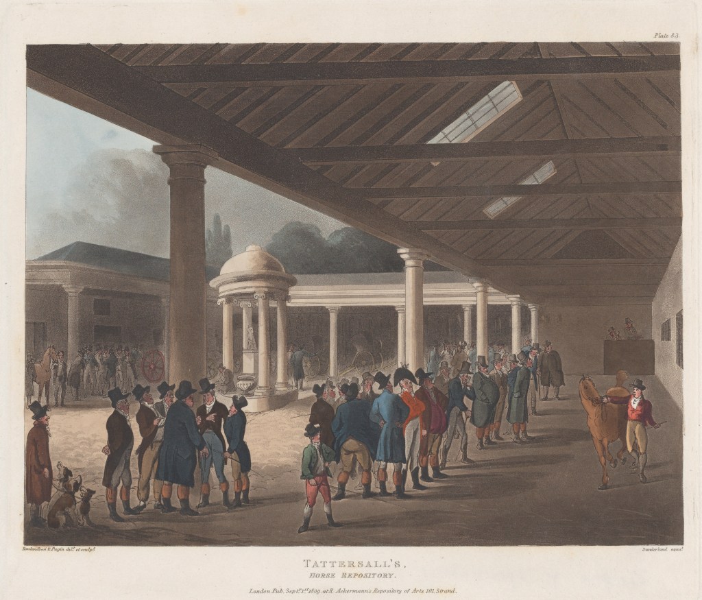 « Un vaste Tattersall » : l’expression renvoie à l’établissement fondé le 10 janvier 1855, rue Beaujon, sur le modèle du Tattersall de Londres, créé au XVIIIe siècle par Richard Tattersal. La riche clientèle de l’ouest parisien venait y acheter des chevaux de selle ou d’attelage et des voitures, Dans ce commerce de luxe, les commissions étaient de 10 % sur le prix de vente [20].